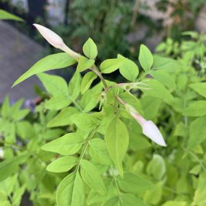 おはようございます☀ 葉っぱ🌱の色が薄いハゴロモジャスミンやっと花が咲く 家に来て初めてかなぁ❓ 今日もよろしくお願いします🙇