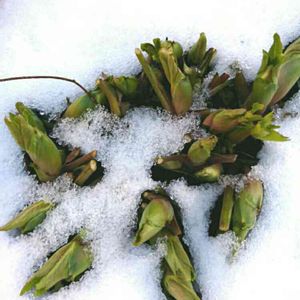 クリスマスローズ 蕾が雪に埋もれてます💦 開花が楽しみだけど 今年は遅いかもですね〜(^ω^;);););)