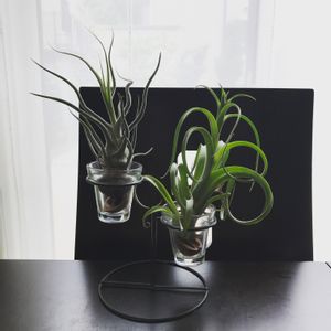 先日仕事帰りに会社近くのホームセンターに寄ったらエアープランツ入荷したてで沢山買ってしまった😊 壺型のフォルム好きなのでプルイノーサ持ってるけど2つ購入👍 100均の木の札?にくっ付けてみました✨ プルイノーサは一つは流木でもう一つはどうしようか悩み中😅 壺型は板にくっ付けるの難しい💦