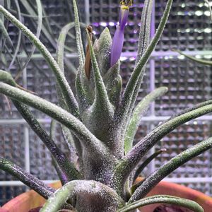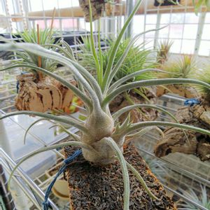 ティランジア プルイノーサ コロンビアフォーム 2年以上栽培してますが、成長速度がかなり遅いです😐 ワイヤーラックで管理してるけどやはりコルク等で活着させないと調子出ないのかな🤔