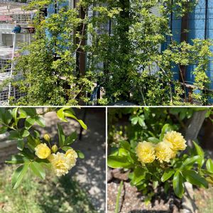 わが家のつるバラ(モッコウバラ)💛 いくつかあるながで真っ先に咲いてくれる もう二十数歳なのです💚 木が割れかけて老木なのに 花が沢山ついてくれる💛 今年も咲いてくれてありがとう💛