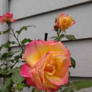 ダブリンベイ🎶 隣地の草むらに近いせいか、虫の被害がこの子だけ多くて花が傷んでいます🥲 壁面を放射状に咲き誇ってくれるのはいつかな〜🌸🌸