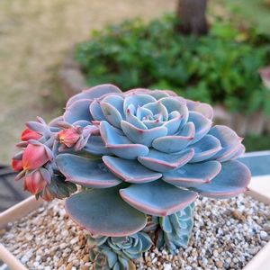 大好きな七福神サマ♪ ♬ ヾ(´︶`♡)ノ ♬ 酷暑を乗り越え ぎゅっとしまって 可愛く育ってます☺️ ♥︎︎∗︎*゚①②③④ 花壇の七福神サマ なぜか この時期にお花が 咲いています😆 ♥︎︎∗︎*゚⑤ 9月頃新たに作った七福神サマの花壇 お花のような姿が可愛いです☺️