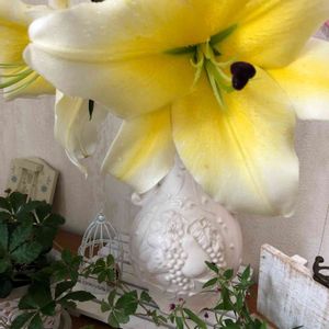 おはようございます😃 梅雨らしいぐずついたお天気が続いています☂️☁️⛅️ 百合が咲き始めました🌸 真っ白かと思ってたら、黄色多めでかわいい🌼😍🏵 家の中まで香りが漂ってきます💕