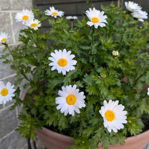 ①風除室で冬越ししたこぼれ種のノースポール。ここから苗をいくつか取り出して別なプランターへ。 ②風除室で冬越しのこぼれ種ビオラ。色んな色で咲いてるけど白と黄色は現れなかった💦やっぱり強いのは何年経っても現れる🙂 ③冬越しは戸外でパーゴラの下だったから雪の重みでかなり参ってたけど復活してきたからマグアンプあげました。 ④特大プランターに植えてたチューリップ。2人がかりで移動したんだけど、もう古いから縁がベキッてなりそうで怖かった😂