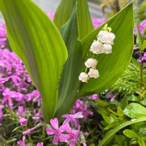 雨に濡れたスズランと芝桜 今日は寒くて 家の中ではストーブつけています。