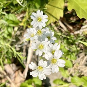 雑草取りをしていたら 我家の崖の下にいつのまにか咲いていたこんなかわいい花を見つけました♡ こちらで調べてみたら セラスチウム という名前の花でした。 雑草だと思っていたけど そのまま咲いていてもらおうと思います( ´∀`)