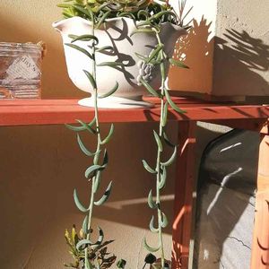 🏷ネックレスの日に参加しまーす💕📿 うちの三日月ネックレスちゃん📿 何だかやたらと大きいのです 一つ一つがやたらと大きい😅 寄せ植えにちょっと入れたら垂れすぎて困るようになってしまった😂 チョンパチョンパして✂️ 単体でハンキングにしようかな😅