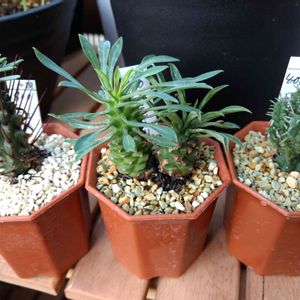 あたしの周りで大人気な ソテツキリン🦒 うちにはいなかったけれど とうとうお迎えしました🥰 ソテツキリンは交配によって作り出された品種で パイナップルコーンと呼ばれています 元々の品種はユーフォルビア・鉄甲丸とユーフォルビア・鱗宝からはじまっているようです 成長はゆっくりめと聞いていたけど 新しい葉っぱを日に日に出してくれてる💚 ソテツキリンは葉が上向きに生えるので 『陽の気』をもっているといわれています いつか大きくなって子株を出してくれるといいな🥰