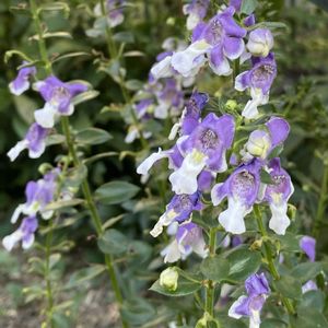 【アンゲロニア】《オオバコ科》 花言葉 「過去の恋人」「無遠慮」「拒否」 別名 アンゲローニア アンゲロンソウ ヤナギバアンゲローニア アンゲロニアは、ラテン語の天使(Angelos) がその語源といわれています。花の姿形は口を開けた金魚や骸骨のように見えるのに、 別名では「エンジェルラベンダー」とも呼ばれているのがある意味対照的であり面白いです。