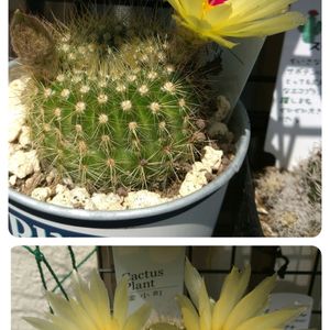 今日のお花は続くよ、どこまでも~🎶 サボテン ノトカクタス属 金小町 去年6月 さっきの青王丸に似てるけどね。 スリーコインだっちゃよ‼️