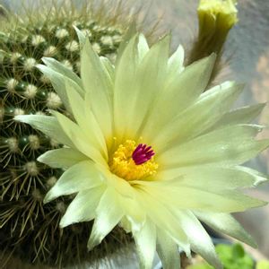 サボテンの置き場を朝日が当たるところに移動させたら、花が全開に咲くようになりました(^ ^) 金小町のお花2つ目開花✨
