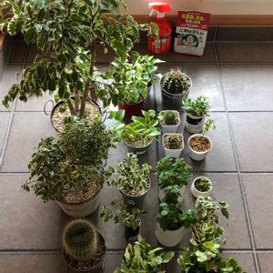 今日はお薬散布デー♩ オルトランとベニカを撒いて、観葉植物とサボテン達は玄関で乾燥待ち☆