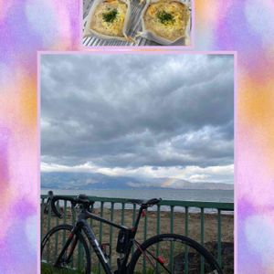 それぞれの時間〜✨ 次女はクロックムッシュ🤤 息子は琵琶湖畔サイクリング🚴♂️💨 次女は静岡へお出かけするから、玄関に置いておくから取りに来て🙏だって😆‼️ 明日、美味しくいただくために🤤 もちろん❣️取りに行きましたとも🚙💨 長男は出張中〜🚅 今日はオフ📴 琵琶湖畔を4時間走ったようです🚴♂️💨 ちょこっと虹が見えます🌈🤭 🏷平和を願う🕊
