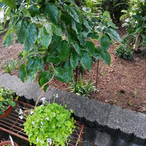 <地道投稿>おはようございます☀️風強くきゅうり苗一本折れたみたい😨小鉢「ネジリソウ」延び花芽も膨らみ(アップ🤳2)階段で一枚🤳風強く心配だから駐車場に移動して様子見ます。