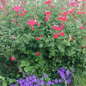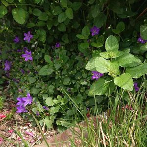 おはようございます。チェリーセージがウチの庭のいたるところで勢力を拡大させています(汗)でも、最近のお気に入りはチェリーセージの陰でひっそりと咲いている紫の花のベルフラワーです。今年も咲くか心配してたけど咲いてくれた。
