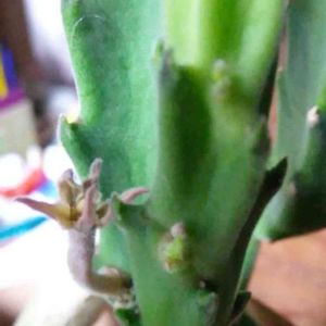 スタベリアの蕾ではなく花の咲いた後でした。ちっともおおきくならないので前の写真とくらべてはわかりました。種子が出来るかな?