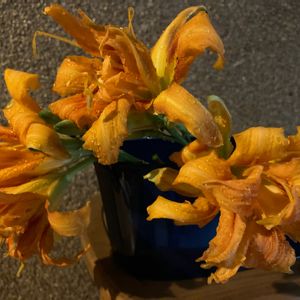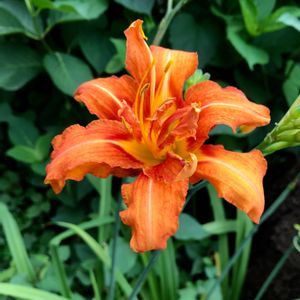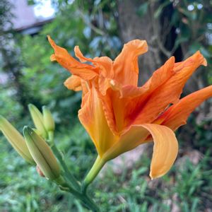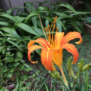 こんにちは~☔️/☁️ 今朝は大雨で一時大雨・洪水警報が出ていましたが、午後からは曇っています。 不安定な天気が続きます、大雨地域の皆様十分にご注意ください。 「ワスレグサ(忘れ草)」 散策路沿いの畑、鮮やかな色合いで咲いていました。 ヤブカンゾウ(籔萱草)はワスレグサとも呼ばれるそうです。 撮影日 2021.7.6 以下、メモです。 籔萱草(ヤブカンゾウ)、別名忘れ草(ワスレグサ)はユリ科ワスレグサ属(ヘメロカリス属)。7~8月にオレンジ色の赤っぽく大きい八重の百合様の花が咲く。花びらはややくしゃくしゃっとした感じ。野萱草(のかんぞう)はよく似ているが一重咲き。別名のワスレグサ(忘れ草)は花が一日限りで終わると考えられたため、英語ではDaylilyと呼ばれる。実際には翌日や翌々日に閉花するものも多い。