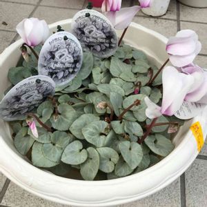 もうシーズンオフなのか1つ100円で5つ、シクラメン プラチナリーフ買った😃👌