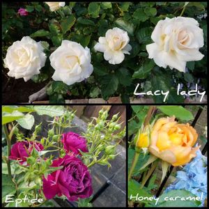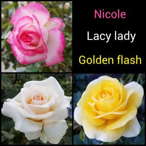 ニコル 親(ストロベリーアイス)より 先に咲きました🌹 レーシーレディ 蕾の期間が長かった💦 やっと開いてくれました😊 ゴールデンフラッシュ 今季は縁が白です💕 黄色一色でしか咲かないと 思ってたよ😆