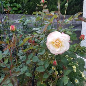 小さな庭が随分と賑やかになってきました😁 クイーン・エリザベス ディスタント・ドラムス アプリコット・ネクター ニコル レーシー・レディ