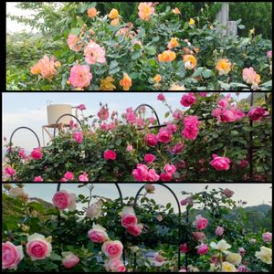 つる薔薇が咲き出しました🌹 パレード アントニオ・ガウディー 新雪 HT キャンディー・ストライプは絞りが入りませんでした💦 でも香りは最高です👍