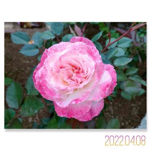今年一番に開花した薔薇は、HT アブラカダブラでした。 剪定の仕方が悪いのか?ベーサルシュートが出ないので植えた時からある枝のままです💦