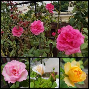小さなバラなのですが 品種名がわからずモヤモヤ😖 どなたか わかる方いらっしゃいませんか? 品種名候補でも構わないので 宜しくお願いします🙇 大きさの比較のため デュランタ宝塚と並べてます。 ピンクや白で咲いたりします。