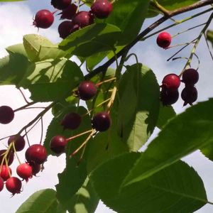🌿🍒ジューンベリーの実🍒🌿 別名 アメリカザイフリボク バラ科ザイフリボク属 自転車で散策中に見つけました😲お花の咲く時期を見逃して、もったいないことをしました😵