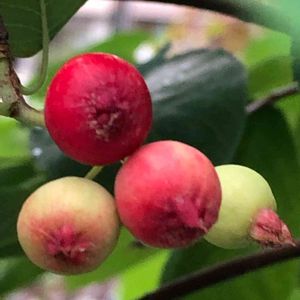 苗で来て4年目のジューンベリー。 赤くなってきました。鳥に狙われる前に食べなくちゃ😊
