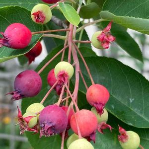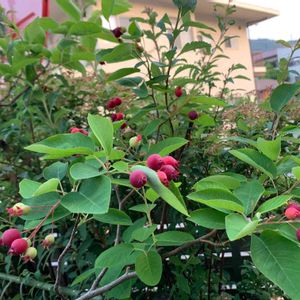 ジューンベリー 別名)アメリカザイフリボク 美味しそうな実が付いていました 鳥たちが来るといいね🐦🦜 💮今度花も見に来よう