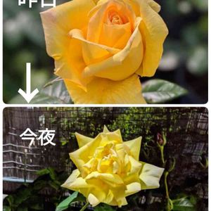 ❝ 薔薇 あまつおとめ・天津乙女 in my garden ③ ❞ ❛ 快晴、雨上がりの朝のフォト 昨日の投稿では雨雫💧に主役の座を譲った 蕾だった写真右下の子が花開いて見事に 今朝は主役に輝きました! ❜ おはようございます! コロナウィルス感染、気を緩めずに! ですね! 我が家で今シーズンの10番目に咲く品種の薔薇です。 <2021マイ・ローズNo.10 あまつおとめ・天津乙女 > 今日の皮切りも昨日と同じ被写体のビタミンカラーの黄色い薔薇です。 昨日の朝投稿の写真での、この写真の上下二輪の間にあった一輪は儚く散りました。 房咲きで花持ち短く儚く散っていきます。 1960年、寺西菊雄さん作出の日本人作出の薔薇で最初期に欧米で人気を博した記念すべき薔薇の様です。 天津乙女さんはこの黄色の微妙な色味の写真表現が私には特に難しい部類の薔薇です。黄色み加減や濃さ(≒彩度)の設定等でいろんなパターンを撮らざるを得ませんでした。 撮影日:2021年5月14日 朝 焦点距離100mm(=実効)