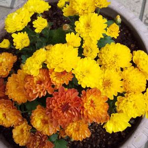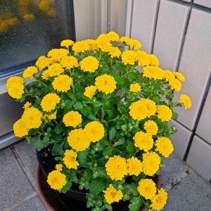 マム・ジジ🌼🌼🌼 この花は先日、どんな苗でも満開にしてしまうという、お花のマジシャンのような腕の持ち主の花友さんがアップしていて、 可愛いなぁ❗️良いなぁ❗️ と思っていたところ、幸運にもホームセンターで見つけることが出来てお迎えしました🤩✌️ みっちり咲いて、つぼみも一杯💐💐 花も可愛らしいですね👍️ しかも、そこまで高くない💰️ なので、ついでにホワイトも買ってしまった😜🎶 で、そのホワイトの📸はまた別のお話し……😁 そうです❗️ 出し惜しみです💨💨 しかも、出すのを忘れてそのまま終わるかもしれないという😰 それは年のせい…😵