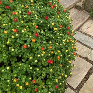 ジジ ガーデンマム 寄せ植えしました💕 アルテルナンテラ千日紅の千紅花火 カルーナガーデンガールズを花材に選び うちにあったプラチーナとアイビーを合わせてみました😊 好みのお花を見つけて寄せ植えすると楽しいです🌸
