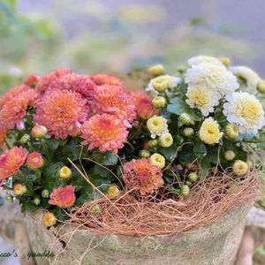 ジジ ガーデンマム スノーとコーラルを二色植えにしてみました❁⃘*.゚