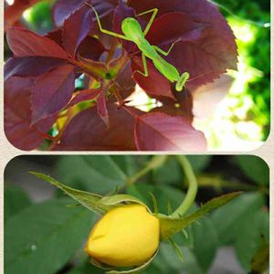 おはようございます(*´▽`*)ノ)) カマキリの赤ちゃん ここにいました。 どうやらうちのお庭が気に入ってくれたみたいです💗 調べると、赤ちゃんはアブラムシとかを餌にしているそうです。 害虫駆除してくれている住み着いてしまった、来訪者さんです。( ﹡・ᴗ・ )b