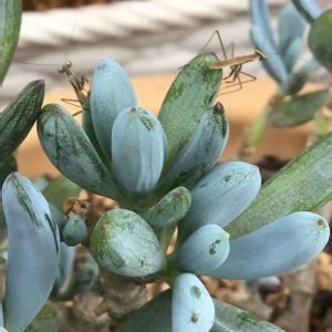 昨日、生まれたカマキリさん❣️ 今朝は、多肉の 万宝 に 登り、降り‼︎ 2匹 居るんですが、分かりますかぁ〜⁇ 😳 おチビちゃん達 が ウロウロしてま〜す ‼︎ いっぱい 居るのは 今だけか。。 頑張れ〰️‼️