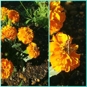 畑のマリーゴールドに赤ちゃんカマキリが😆 卵をたくさん見つけたから…これからも、たくさん見かけるかも😊 可愛い❤️