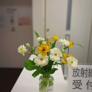 病院の生け花 直売所でラナンキュラスを手に入れました。落ち着いたカラーと艶やかな花びらが素敵です。 季節の花 チューリップ、スノーフレーク、ドウダンツツジ、リキュウバイ、ヤマブキなどを使って