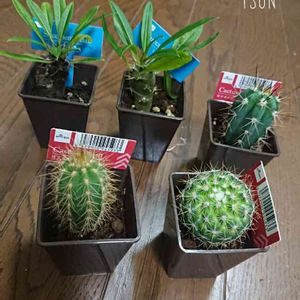 DAISOお迎え子ちゃん達💓 誰か、、、アズレウスさんで合ってるか教えて下さい(、._. )、w パキポディウムさんも久しぶりに出会えちゃいました◡̈❤︎ 一度枯らしたから、、、再チャレンジ!保険株に2鉢⸜(*ˊᗜˋ*)⸝w マミラニアさんは、お目目か、花冠を咲かせたくてGET💓 皆頑張ってね~( *ˊᵕˋ)(お前が育てるのに、他人事かよw)