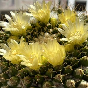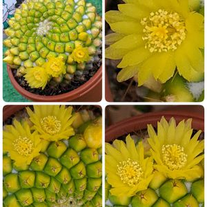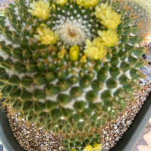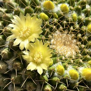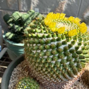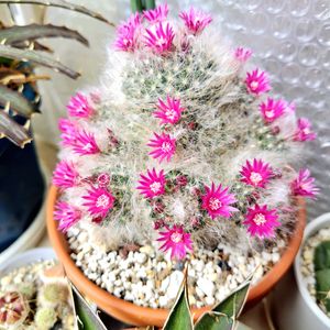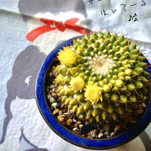 サボテン マミラリアの開花 色んな種類が同時に咲いています 花アブに受粉をお願いしたいです