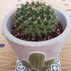 ダイソー出身のとげの短いタイプのサボテンです。 成長はかなりゆっくりで、やっとここまで大きくなったので名前がわかればうれしいです。 よろしくお願いいたします。