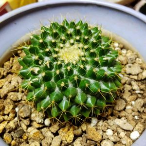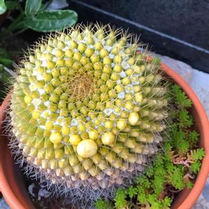 🌵きょうのさぼてん🌵 マミラリア 金洋丸 蕾は輪っかになってましたが、片方だけフライング開花です🌼 黄色の花がお気に入りです😉💕