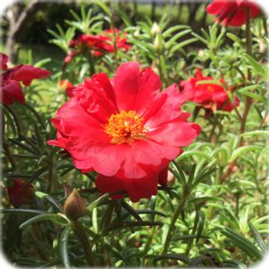 八重咲き松葉ボタン やっと咲き始めました😊 やっぱりお日さまの力🎶