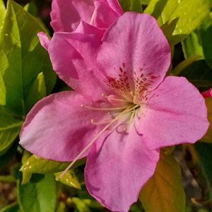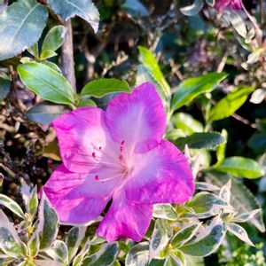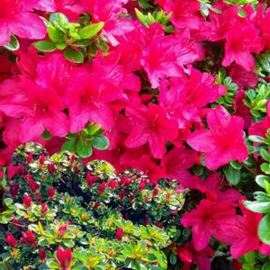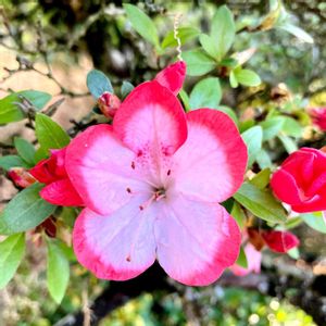 ツツジ に変更 多分サツキ❎です (修正しました) となりにはツツジがあります イマイチ違いがわかりません 葉っぱがツルツルなのがサツキ 葉っぱに毛がはえているのがツツジ? どなたか明確な違いのご指導お願いします(笑)