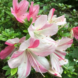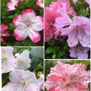色んなさつき🌸 可愛いさつきを見つけました♥️ どれもさつきが植えてある植え込みから咲いていてそれぞれ違う場所なのですが、斑入りだったり、ハイビスカスみたいな🌺右下の お花やあまり見たことない種類 (*´꒳`*)♡ みんなさつきなのかしら? どれも個性ありますね(*^◯^*)╯