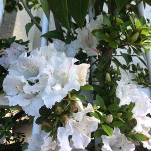 お庭のサツキも咲いています😃🌿真っ白なお花にピンクの斑入りが可愛いです💕 土の中に根っこがあって年々育ち新しいサツキの株が増えました🍃🍀 地味だと思っていたサツキですが白は華やかさがあり最近サツキの良さに気づきました!