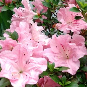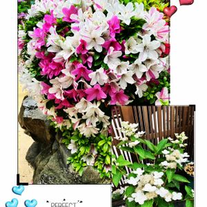 おはようございます😊 今年もたくさん咲いて頂き楽しい思い出蘇ります💞✌️ 梅雨空のしたですが明るくリズミカルなさつきさんです💟🩷🤍