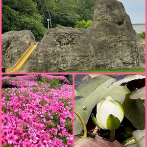 日立神峰公園にて♬ サツキがあちこちで咲いてました💕 ん❓仮面ライダーとウルトラマン⁉️ 汽車ぽっぽに🚂乗る孫たちを見守ってました😅
