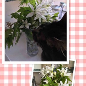 ツツジ?サツキ? よくわかりませんが、和風なお花もいいですよね! 洗面台に飾った途端に、 ハクちゃんご挨拶に来ました🧐